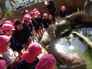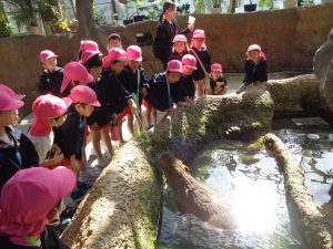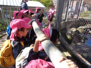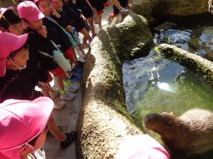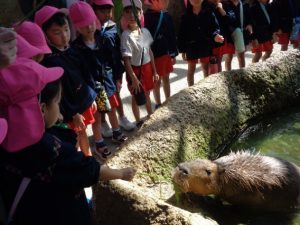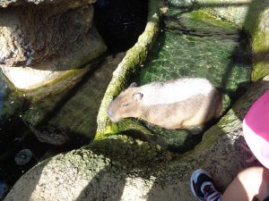 足羽山公園遊園地まで行き、カピバラ・ニホンザル・しゃべるインコなどの