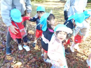 また、どんぐりがたくさん落ちていることに気づき、喜んで拾い集める姿や
