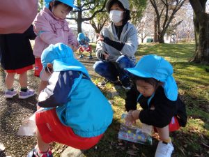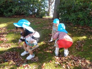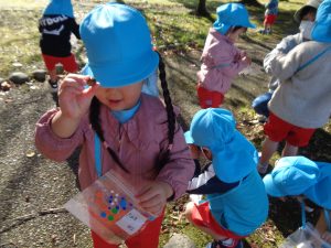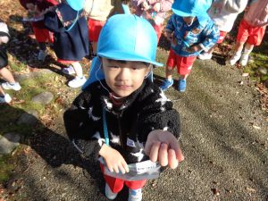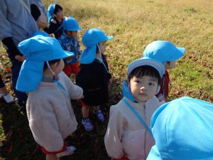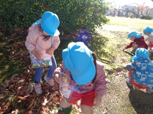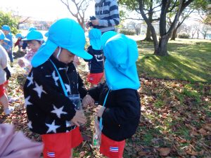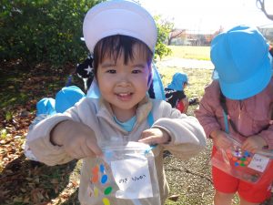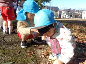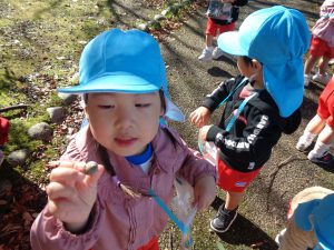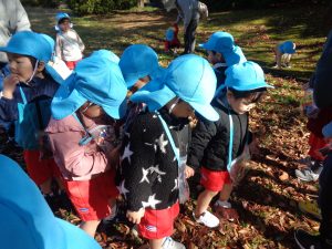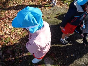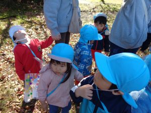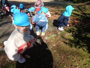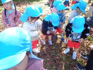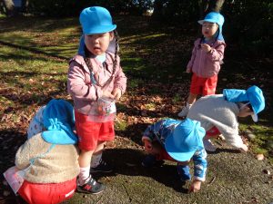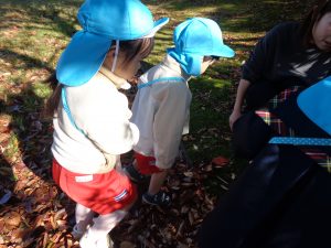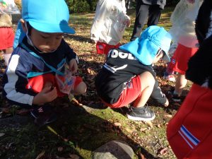 また、どんぐりがたくさん落ちていることに気づき、喜んで拾い集める姿や