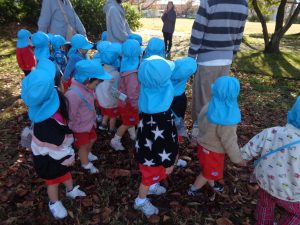 公園に着くと、秋の様々な色の落ち葉の上を「キャッキャッ」と言いながら