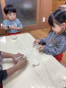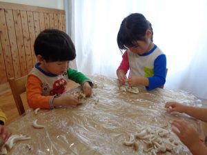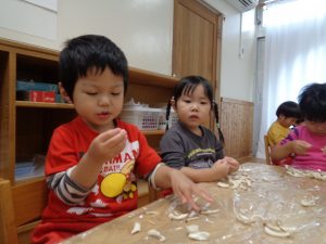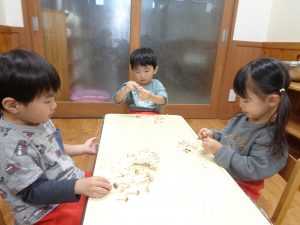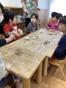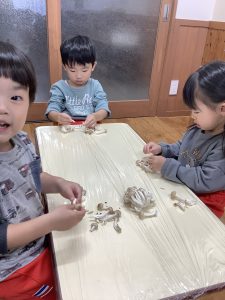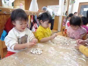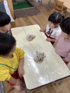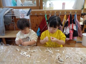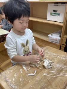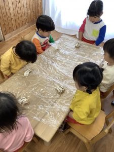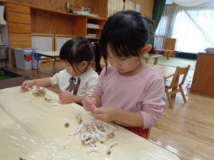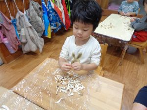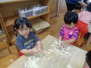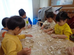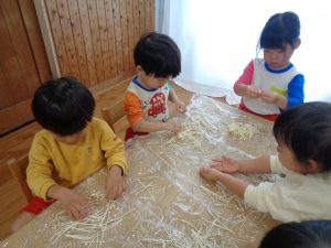 取り組んでいました。上手にちぎることができると「できたよ~!」と