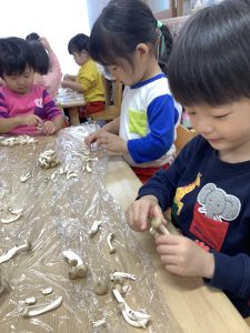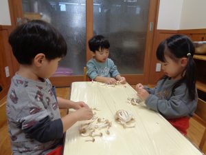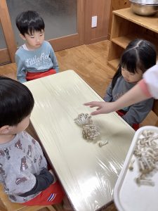 「なんかきのこのにおい~!!」と、ワクワクしている子どもたち。
