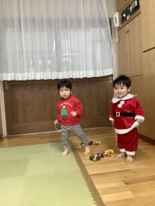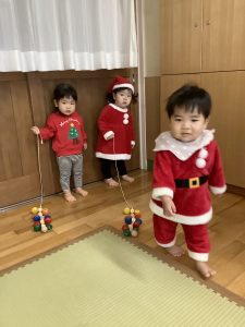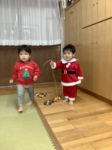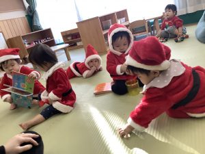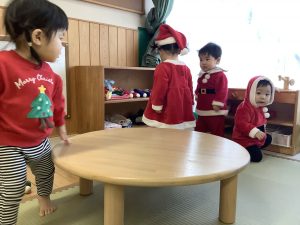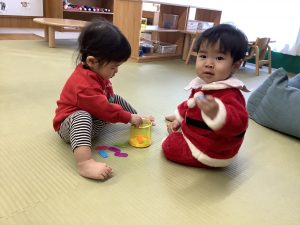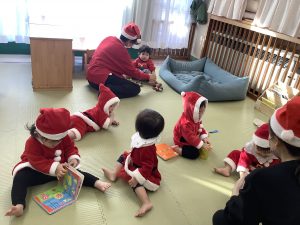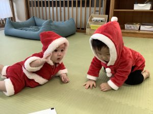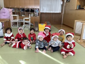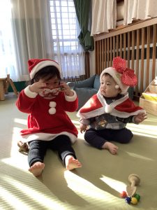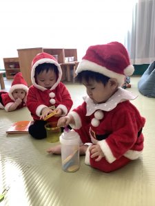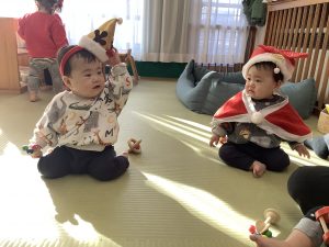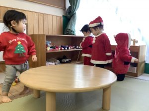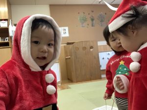 朝からひよこ組にも小さなサンタさんたちがいっぱい!!