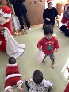 プレゼントをもらい、クリスマス会にも楽しく参加しましたよ!!