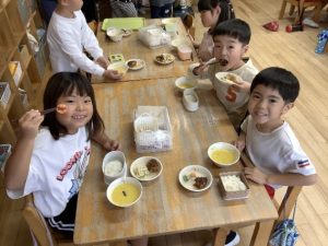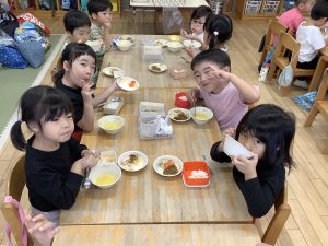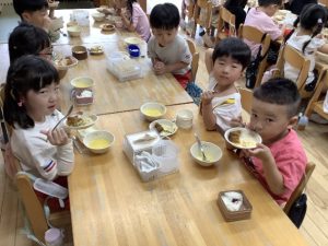 食べたり、カボチャのポタージュスープに喜んでいました。