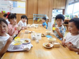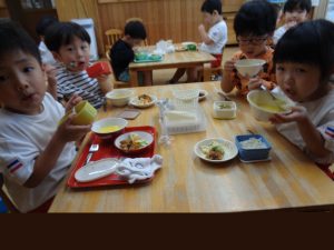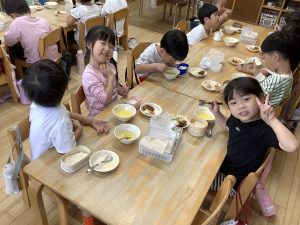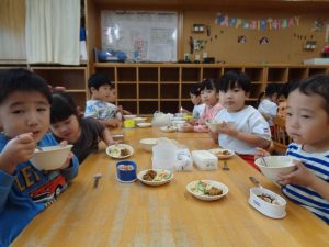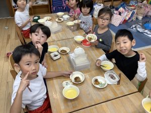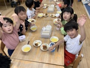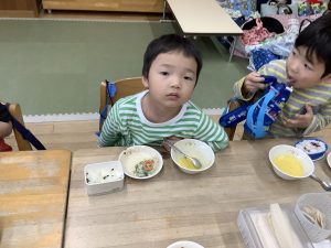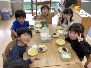 食べたり、カボチャのポタージュスープに喜んでいました。