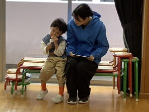 声が飛び交い、お友だちと見せ合いっこが始まっていました。