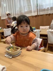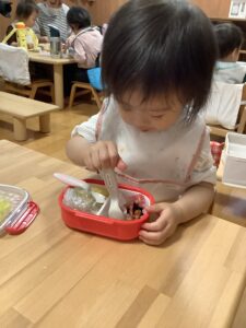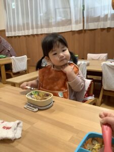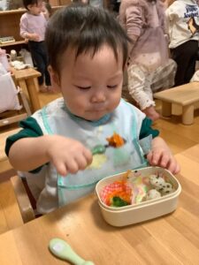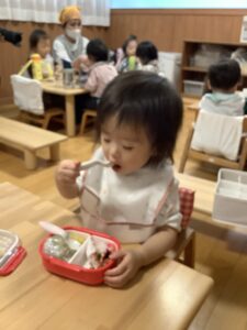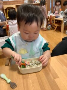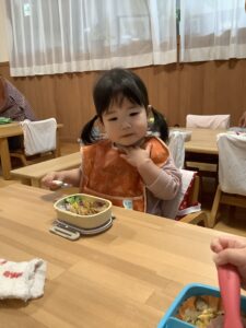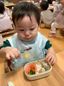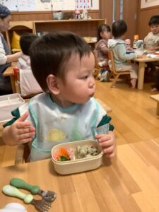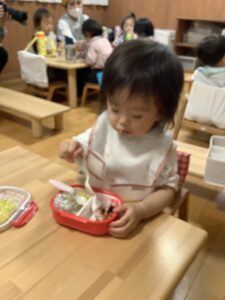 初めてのお弁当に目を輝かせているひよこ組さん!!