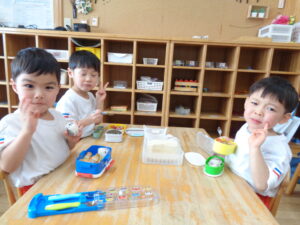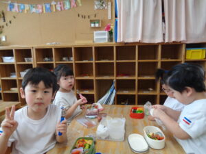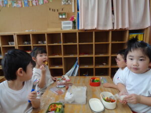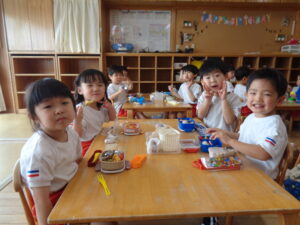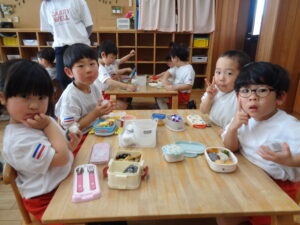 お部屋に戻り、お弁当を食べて「美味しいねー」と、とても満足そうでした。