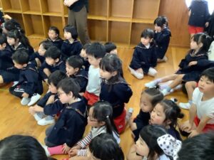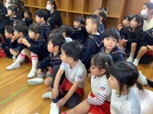 もちつき会の前に「14ひきのもちつき」の絵本を見て、興味や関心を