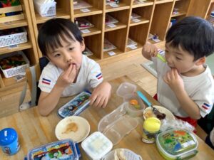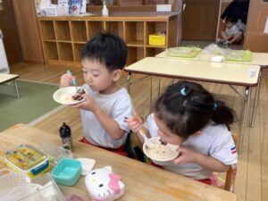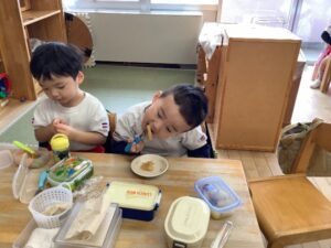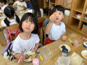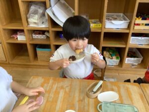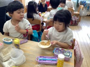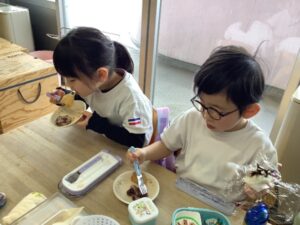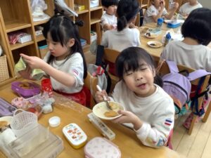 「お米からできるのしってるよ!」「あした楽しみ!」とワクワクしていました。
