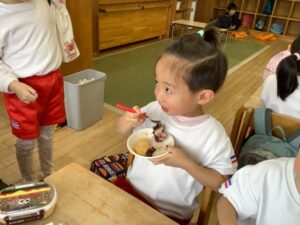 お弁当やもちを嬉しそうに食べていましたよ!!