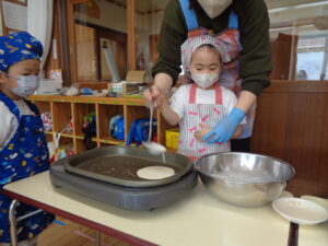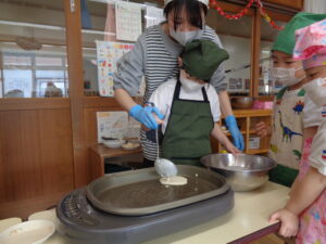 子どもたちが楽しみにしていたクレープ作りを行いました。