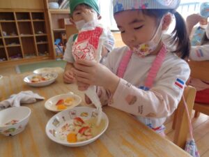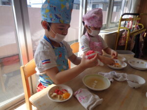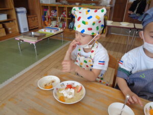 クッキング活動を通して、作る楽しさや食べ物への興味を育む良い機会となりました。