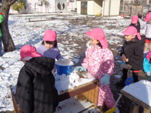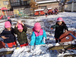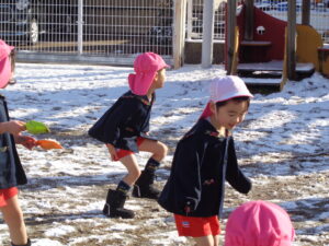 雪が積もった際は、天候や子どもたちの様子をみて、なるべく
