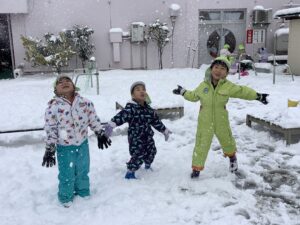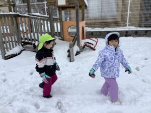 また、雪が降った際は、子どもたちの様子を見ながら、雪遊びを