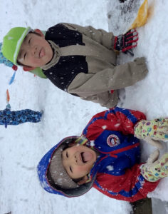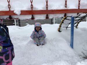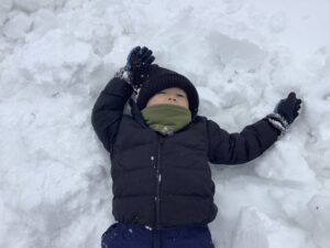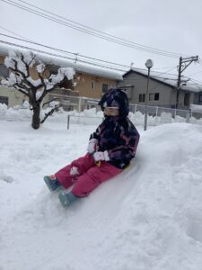 先週から雪が降りたくさん積もったので、雪遊びをしました。