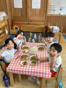 ハッピー人参入りのカレーライスや大好きな先生との写真撮影に